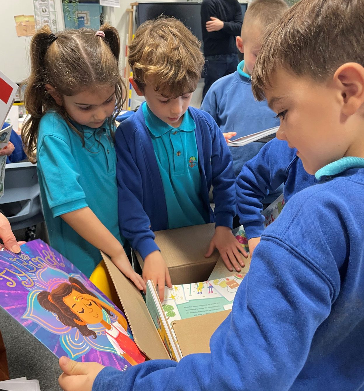 Pupils at Ysgol Hamadryad in Cardiff have received their box of free books, as deliveries to 1,269 primary schools and 205 secondary schools get underway.
